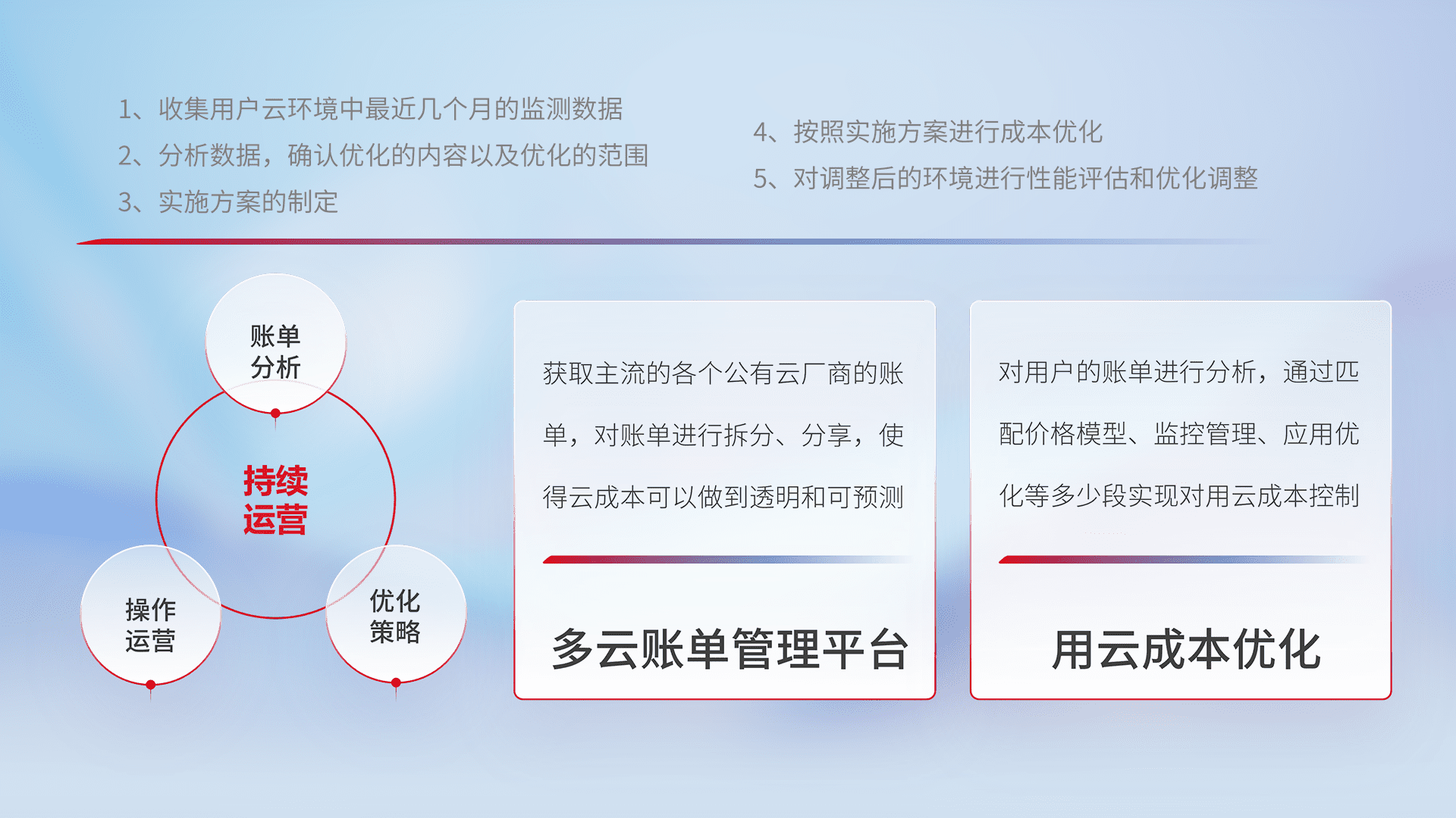 运用智能化工具分析云资源,,,提供日常费用可视化工具,,,自动账单拆分,,成本优化云上费用,,,降本增效。。